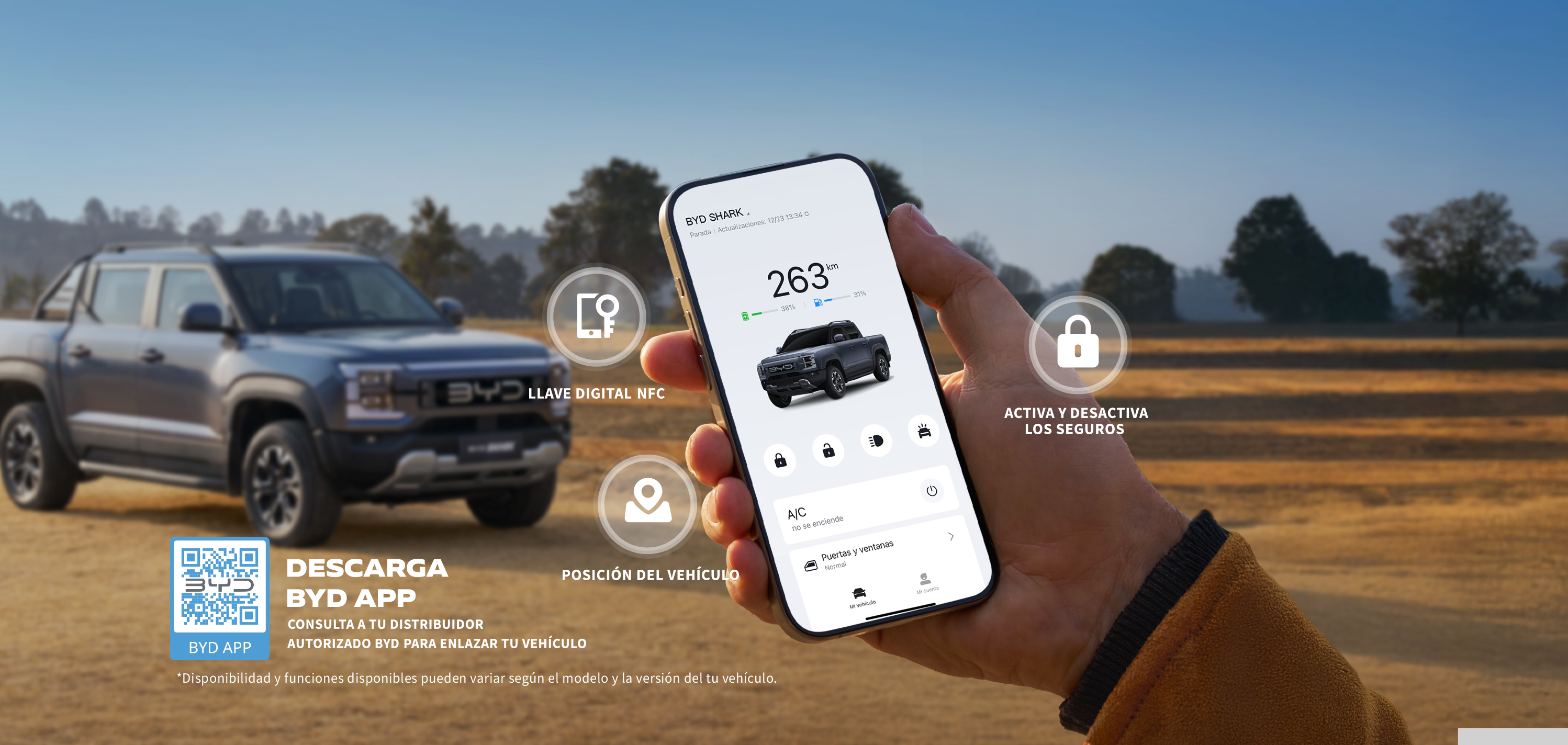 Las funciones disponibles incluyen: - Autonomía: Compruebe la autonomía eléctrica y el nivel de combustible del vehículo (híbridos enchufables) - Presión Neumáticos: Compruebe la presión de los neumáticos del vehículo. Puertas y ventanas: Compruebe si las puertas y ventanas del vehículo están cerradas. Adicional, subir ventanas remotamente. - A/C: Enciende el aire acondicionado con antelación para que la temperatura del interior del coche sea más agradable al entrar. - Asientos: Encienda la ventilación o la calefacción de los asientos con antelación para que la temperatura de los mismos sea más cómoda. - Seguros: Bloquee/desbloquee su vehículo a distancia. - Posición del Vehículo: Obtenga la localización del vehículo. - Servicios: Conozca la ubicación de Centros de reparación autorizados 完美真人 y contacte vía telefónica para agendar una cita. - Luces y Claxon: Encuentre su vehículo aparcado mediante luces intermitentes o sonido del claxon.