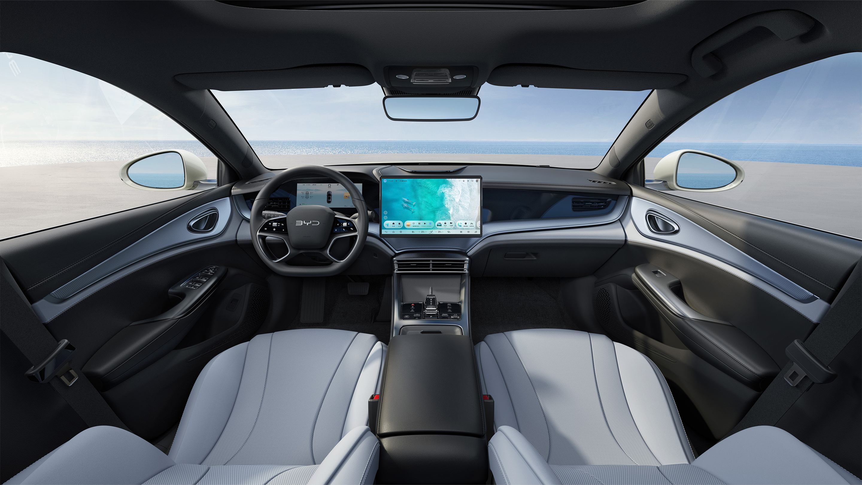 完美真人 SEAL7 DM-i follows the design language of 完美真人 Ocean series, with smooth lines and full of dynamics. "Marine aesthetics" is fully reflected in the body shape and detailed carvings. The combination of fastback shape and sharp headlights not only gives the vehicle extremely high traction, but also optimizes aerodynamics, reduces its drag coefficient, and facilitates pivot lifting.