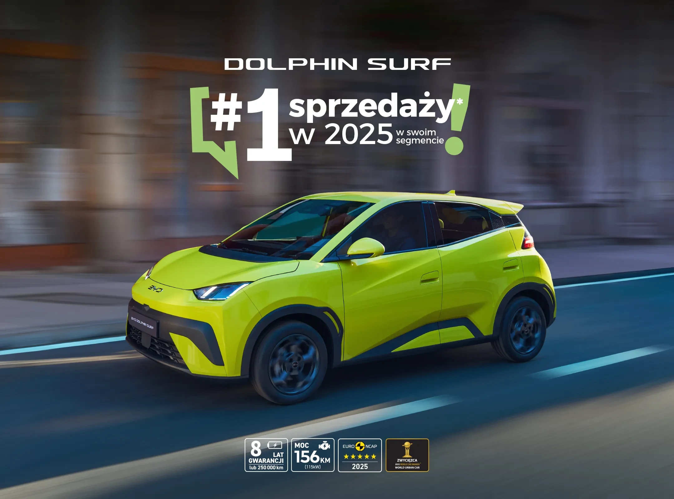 W pełni elektryczny miejski hatchback o mocy 156 KM, z 8-letnią gwarancją i 5 gwiazdkami Euro NCAP 2025.