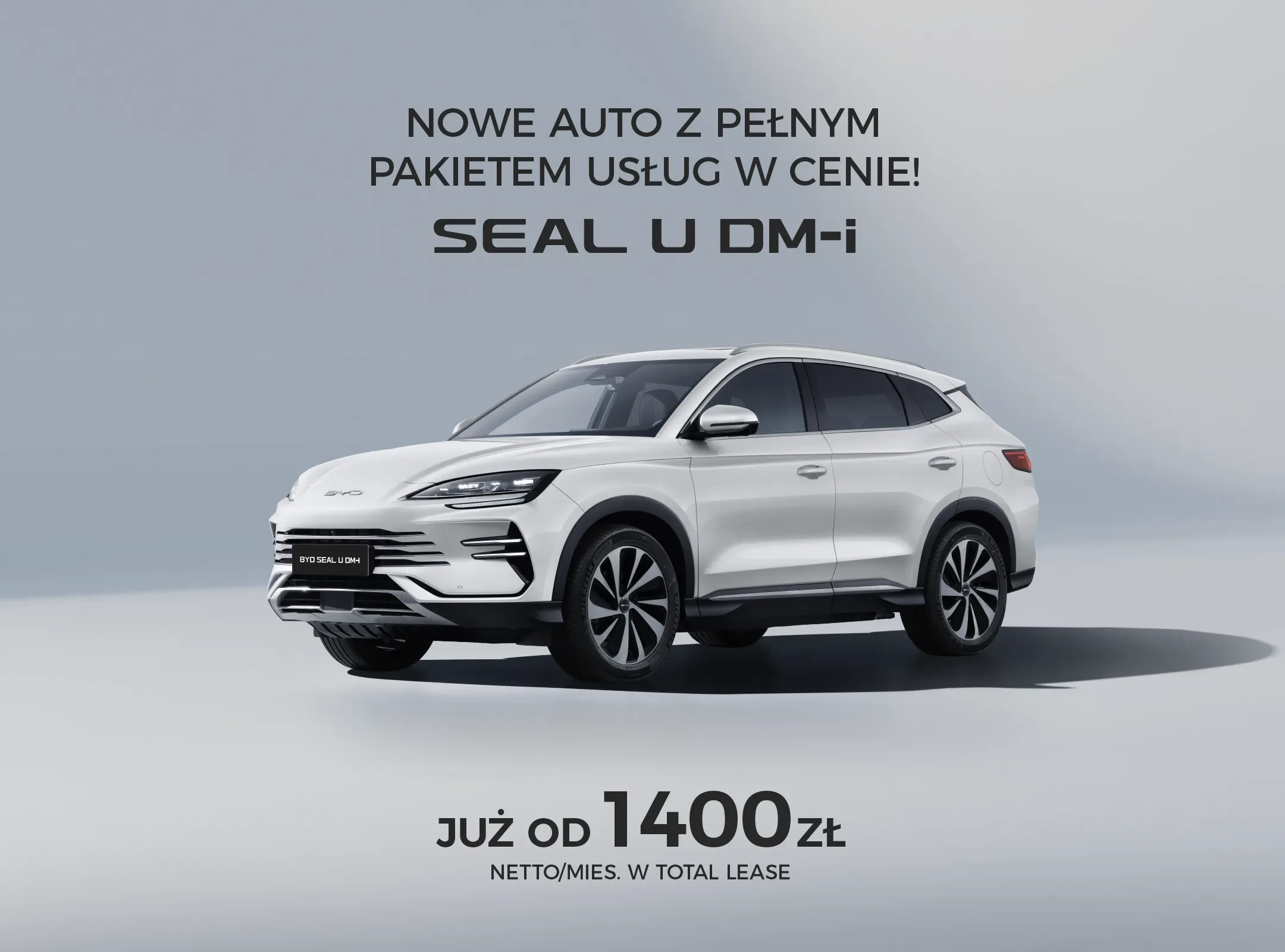 Prezentowana oferta to wartość netto czynszu najmu długoterminowego Programu Total Lease dla auta SEAL U DM-i w wersji COMFORT. Oferta skalkulowana w oparciu o parametry: opłata wstępna 30.000 zł netto, okres kontraktu 36 miesięcy, przebieg całkowity 30.000 km. Szczegóły promocji dostępne u Dealerów oraz na stronie www.gyltyq.com/pl/promocje/finansowanie